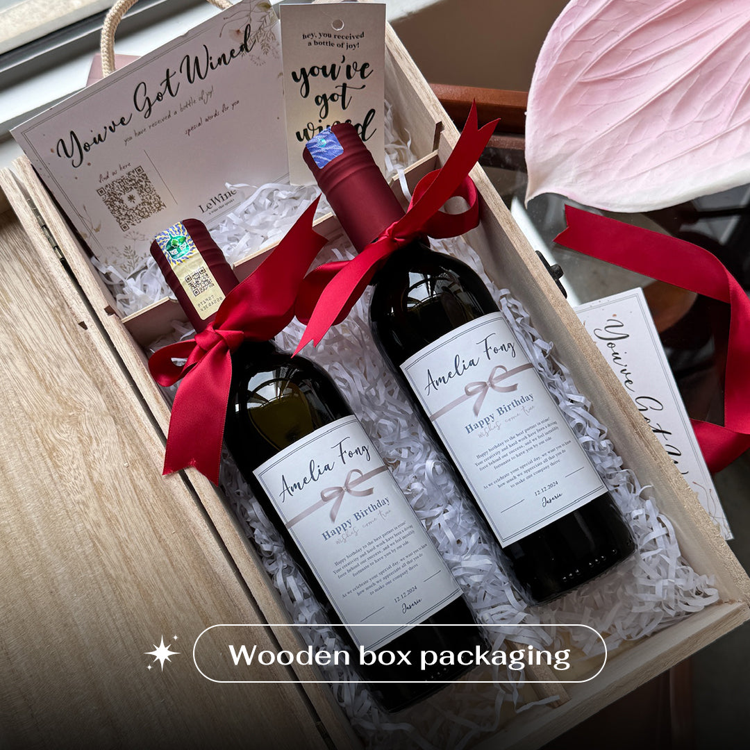 Comes with Decorated LED carton box, paper-bag, wish card and wine instruction card or you can upgrade for Wooden box packaging ✨