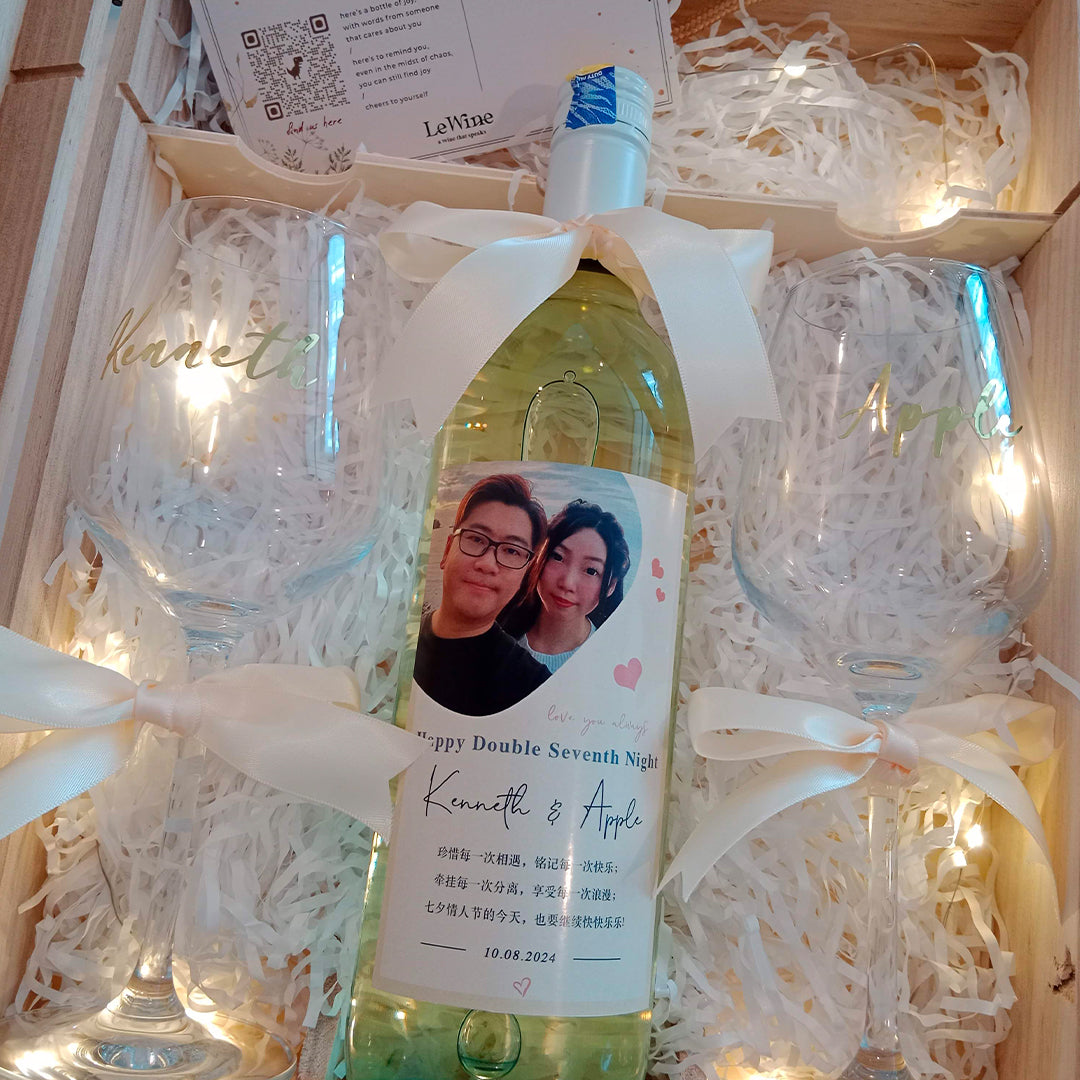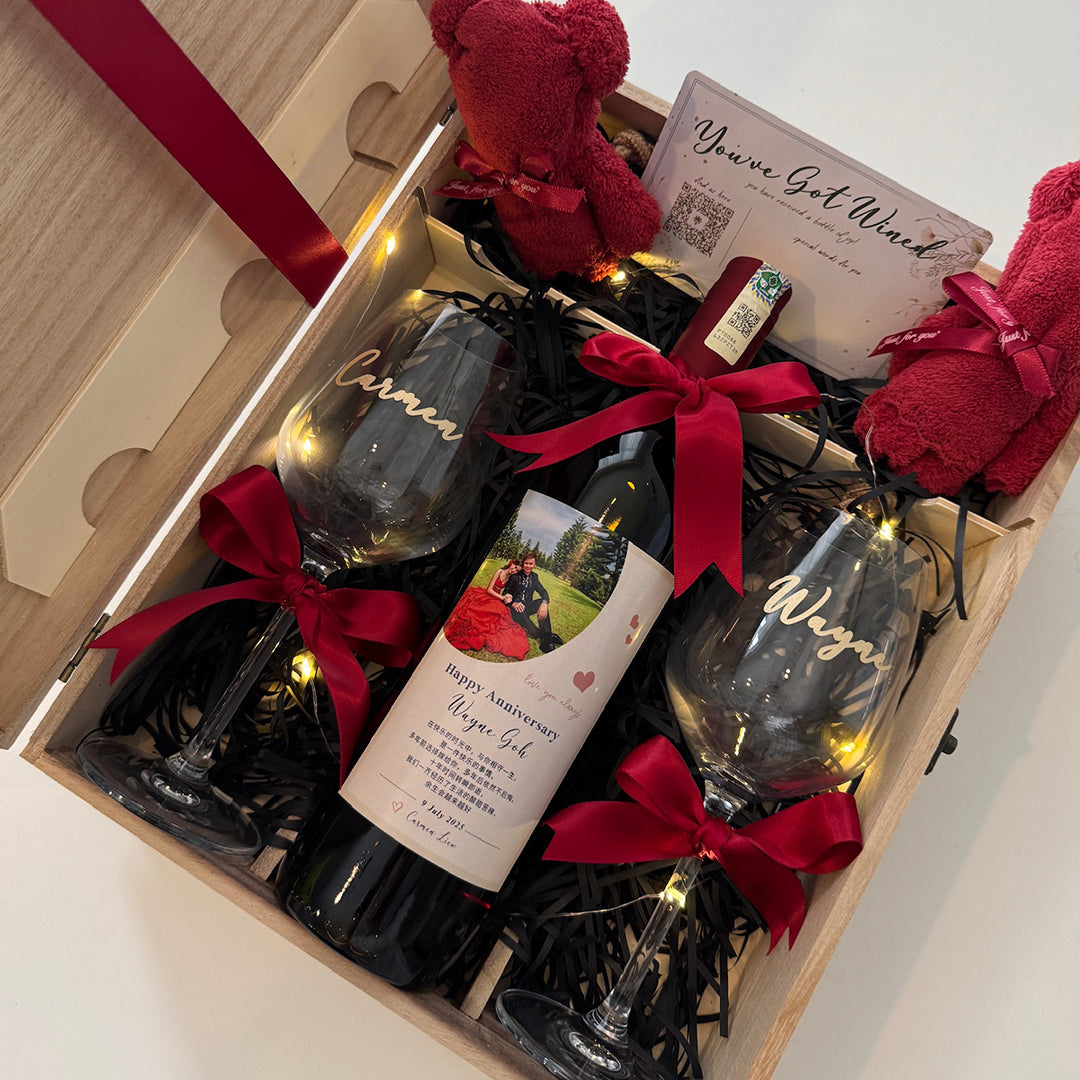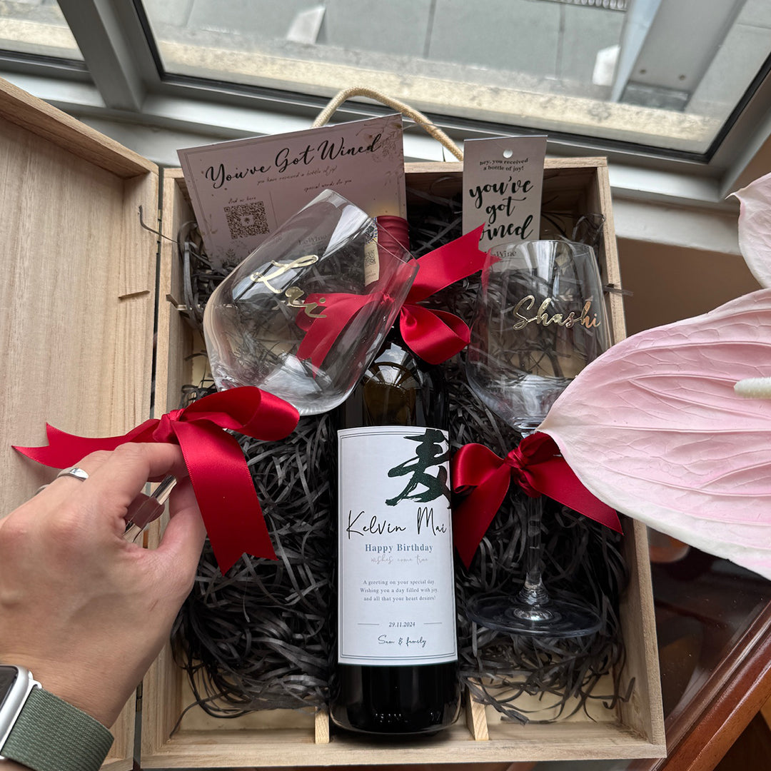 Exclusive Gift Set: Customised Wine & Glasses with wooden box packaging 🎉